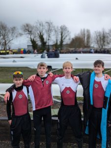 again for the first time this year and, despite challenging conditions of rain, a strong breeze and quite a lot of waiting around, the crews had a good day.” The J15 boys Reuben Stanford, Nathan Lebordis, Connor Birrell and Tristan Hammick with cox Martina Bruce had a strong race, keeping right on the race plan of twenty eight strokes/minute along the full 4.5km course and keeping well ahead of