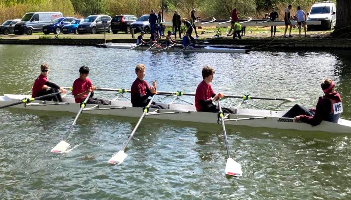 Stratford upon Avon Boat Club’s J14s fielded a full squad across the Bedford Spring Head’s divisions and delivered some exceptional rowing, something that bodes well for the approaching regatta season. Capitalising on some intensive training in quads both the girls (Islay Milles, Eva Cruise, Amelia Cruickshank and Mary Heenan coxed by Charlotte Franklin) and boys (Archie Eaton, Chris Durance, Arthur Burt and Ethan Siwakowski coxed by Eli Ford) blew all their opposition away to claim deserved golds in respective events. These deserved successes were followed by boys’ doubles of Eli Ford and Archie Mansfield then Chris Durance with Arthur Burt who recorded solid times and placed well amongst strong crews. The girls’ crews of Eva Cruise and Charlotte Franklin then Amelia Cruickshank and Islay Milles similarly impressed amongst some quality opposition.