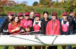 between themselves and Hinksey Sculling School finishing in second place. Representing the girls were the WJ15 double sculls of Alice Jones with Poppy Baines finishing in fourth place and Sophie Evans with Alexandra Francis. Despite an untimely nosebleed and a clash with a slower boys’ crew from Royal Grammar School