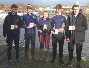 Finally it was the turn of the Boys Ball Cup fours with a straight final between K.E.S. A crew of Tomi Wilcock, Tom Beard, Rafa Macdonald, Ed Rose and Imo Hill and K.E.S. B crew of David Shilvock, Tom Woodcock, Milo Cullimore, Joe Warner and Kate Richardson. The A crew had a fantastic row in almost perfect conditions to take a convincing win, beating the winning time from last year’s regatta. For three of the B crew, this was their second ever race with the whole crew having only started rowing in September. They had a good row and it was a fantastic experience for them and they will be back next year to take the win!