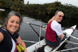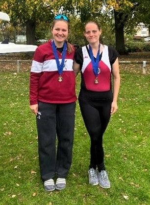 First up for Stratford Masters Women Division One were Corinna Burger and Helen Helliwell in a Women’s Masters C double. Their first race after training through the summer, Corinna said, “After a period of anticipation, we were off with good consistent rowing right up until the end, minding a few trees along the way and coming second overall.”